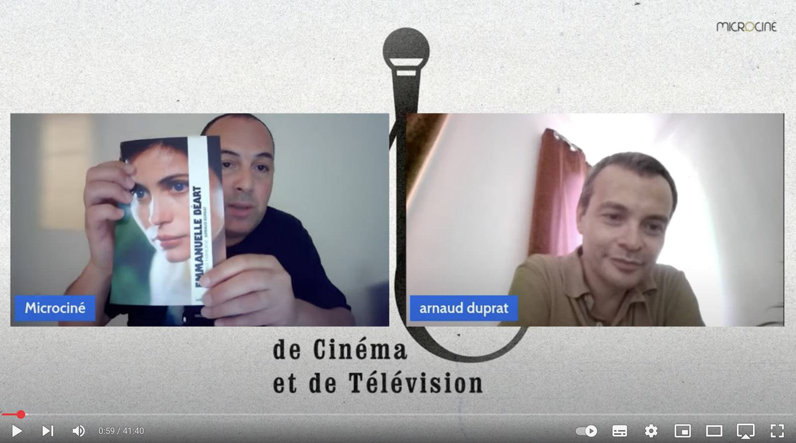 Discussion entre Samir Ardjoum de la chaîne MicroCiné et Arnaud Duprat, auteur du livre Emmanuelle Béart, une actrice française.