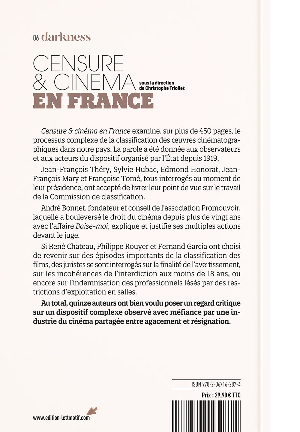 Censure & cinéma en France examine sur plus de 450 pages, le processus complexe de la classification des œuvres cinématographiques dans notre pays. La parole a été donnée aux observateurs et aux acteurs du dispositif organisé par l’État depuis 1919.