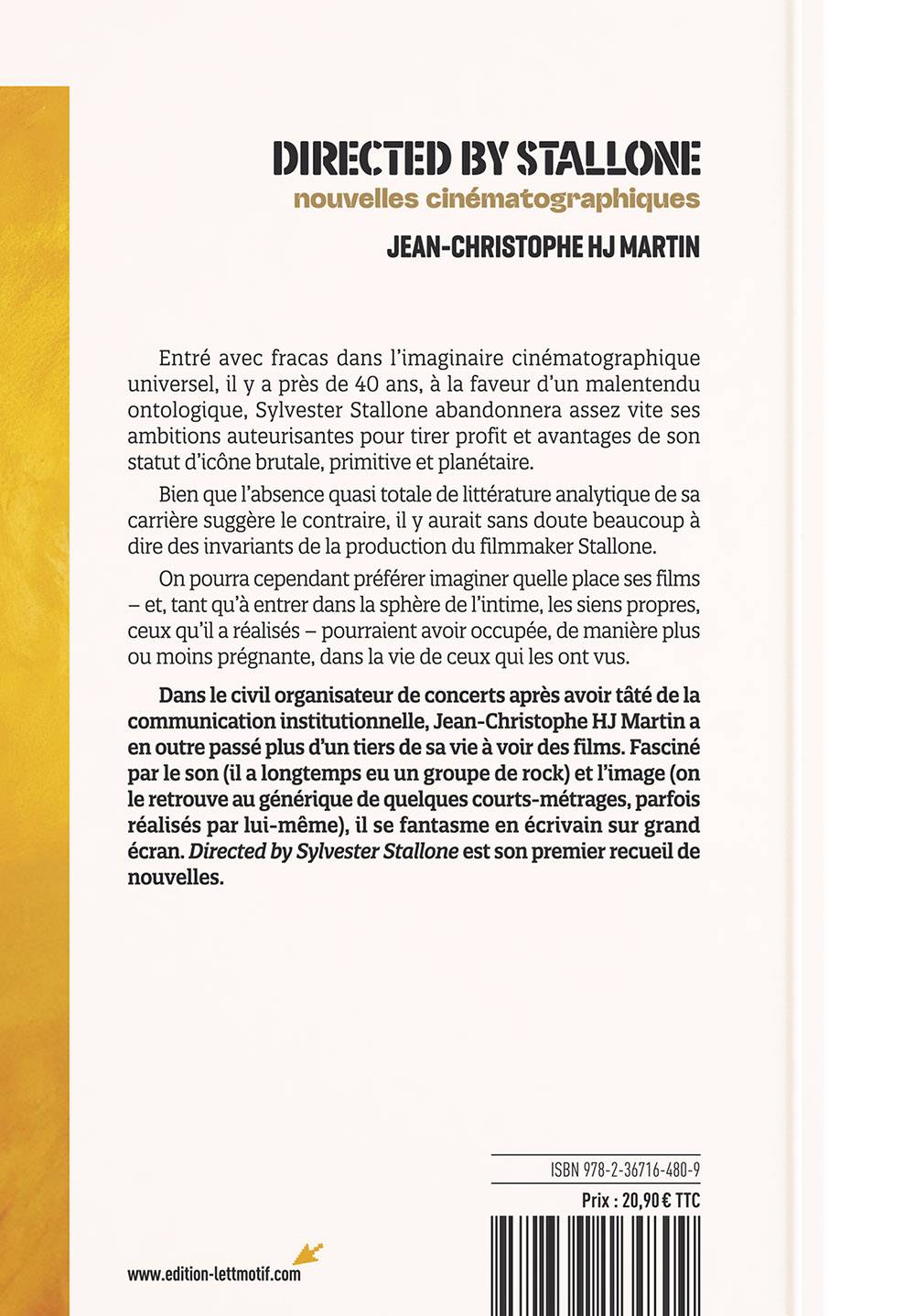 Dans le civil organisateur de concerts après avoir tâté de la communication institutionnelle, Jean-Christophe HJ Martin a en outre passé plus d’un tiers de sa vie à voir des films. Fasciné par le son (il a longtemps eu un groupe de rock) et l’image (on le retrouve au générique de quelques courts-métrages, parfois réalisés par lui-même), il se fantasme en écrivain sur grand écran. Directed by Sylvester Stallone est son premier recueil de nouvelles.